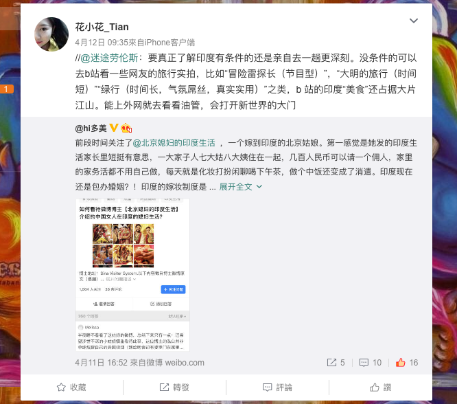 经常有对过去进行反思,并且分享出来给网友。并没有完全把过去隐藏,也不怕被别人看到,反而觉得自己心态的这样一个转变过程是蛮宝贵的一种记录,大背景除了自身故事的发展,更是网络的开放度在提高、人们对印度的兴趣在提高、人们对更加全面客观的印度认知的热情在提高。